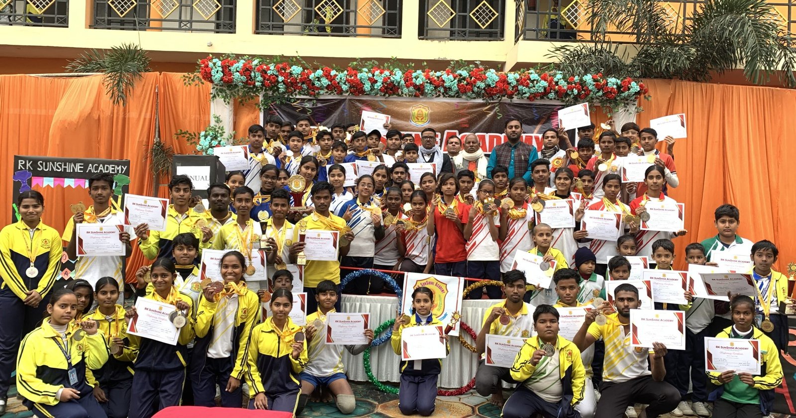 नगर स्थित आरके सनशाइन एकेडमी, महराजगंज में वार्षिक खेलकूद प्रतियोगिता के अंतिम दिन खेल पुरस्कार वितरण समारोह आयोजित किया गया जिसमे मुख्य अतिथि एसोसिएट प्रोफेसर जवाहरलाल नेहरू पीजी कॉलेज महराजगंज डा. शांति शरण मिश्र जी, विशिष्ट अतिथि चीफ ब्यूरो अमर उजाला महराजगंज श्री संजय पांडेय जी एवं विद्यालय के संरक्षक श्री राम प्रीत गुप्ता जी के विद्यालय आगमन पर सर्वप्रथम विद्यालय के प्रबंधक इंजीनियर श्री विवेक कुमार गुप्ता जी एवं विद्यालय के छात्राओं द्वारा तिलक लगाकर मुख्य अतिथि एवं विशिष्ट अतिथियों का भव्य स्वागत किया गया। तत्पश्चात मुख्य अतिथि एवं विशिष्ट अतिथियों द्वारा मां सरस्वती के समक्ष माल्यार्पण एवं दीप प्रज्वलित कर एवं खेल के अंतिम दिन के बचे हुए खेल की शुरुआत हुई। तत्पश्चात पुरस्कार वितरण समारोह आयोजित हुआ जिसमें डॉक्टर शांति शरण मिश्र जी , विद्यालय के संरक्षक श्री रामप्रीत गुप्ता जी एवं विद्यालय के प्रबंधक इंजीनियर श्री विवेक कुमार गुप्ता जी के कर कमलों द्वारा विजेता प्रतिभागियों को मेडल एवं प्रशस्ति पत्र देकर सम्मानित किया गया।