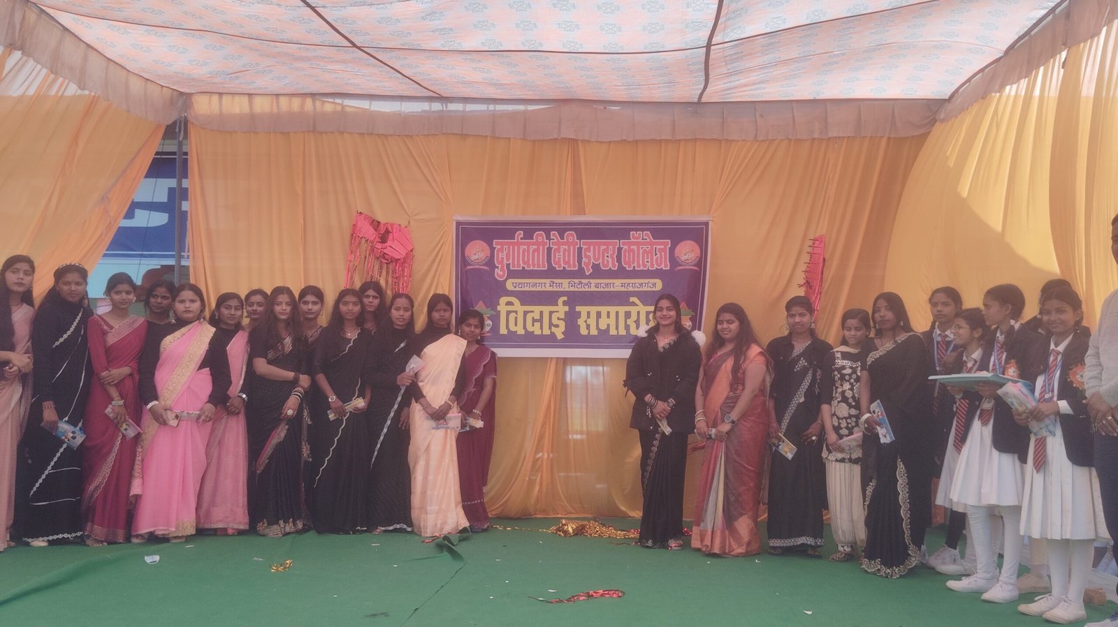 भिटौली, महाराजगंज। दुर्गावती देवी इंटरमीडिएट कॉलेज भैंसा में कक्षा 10 एवं 12 के छात्र-छात्राओं के सम्मान में विदाई समारोह आयोजित किया गया। कार्यक्रम में शिक्षकों ने विद्यार्थियों के उज्ज्वल भविष्य की कामना करते हुए उन्हें आगामी बोर्ड परीक्षा के लिए शुभकामनाएं दीं। समारोह का शुभारंभ साक्षी द्वारा प्रस्तुत सरस्वती वंदना से हुआ। इसके पश्चात दिया, स्नेहा और आयुषी ने स्वागत गीत प्रस्तुत कर सभी का स्वागत किया। सांस्कृतिक कार्यक्रमों की श्रृंखला में दिव्यांशी, आराध्या, अनुष्का एवं रिद्धिमा ने आकर्षक नृत्य प्रस्तुत कर उपस्थित लोगों का मन मोह लिया। वहीं संजीव ने ‘तेरी उंगली पकड़कर चला’ गीत प्रस्तुत कर भावुक माहौल बना दिया। अंत में छात्राओं के सामूहिक नृत्य ने समारोह को यादगार बना दिया।